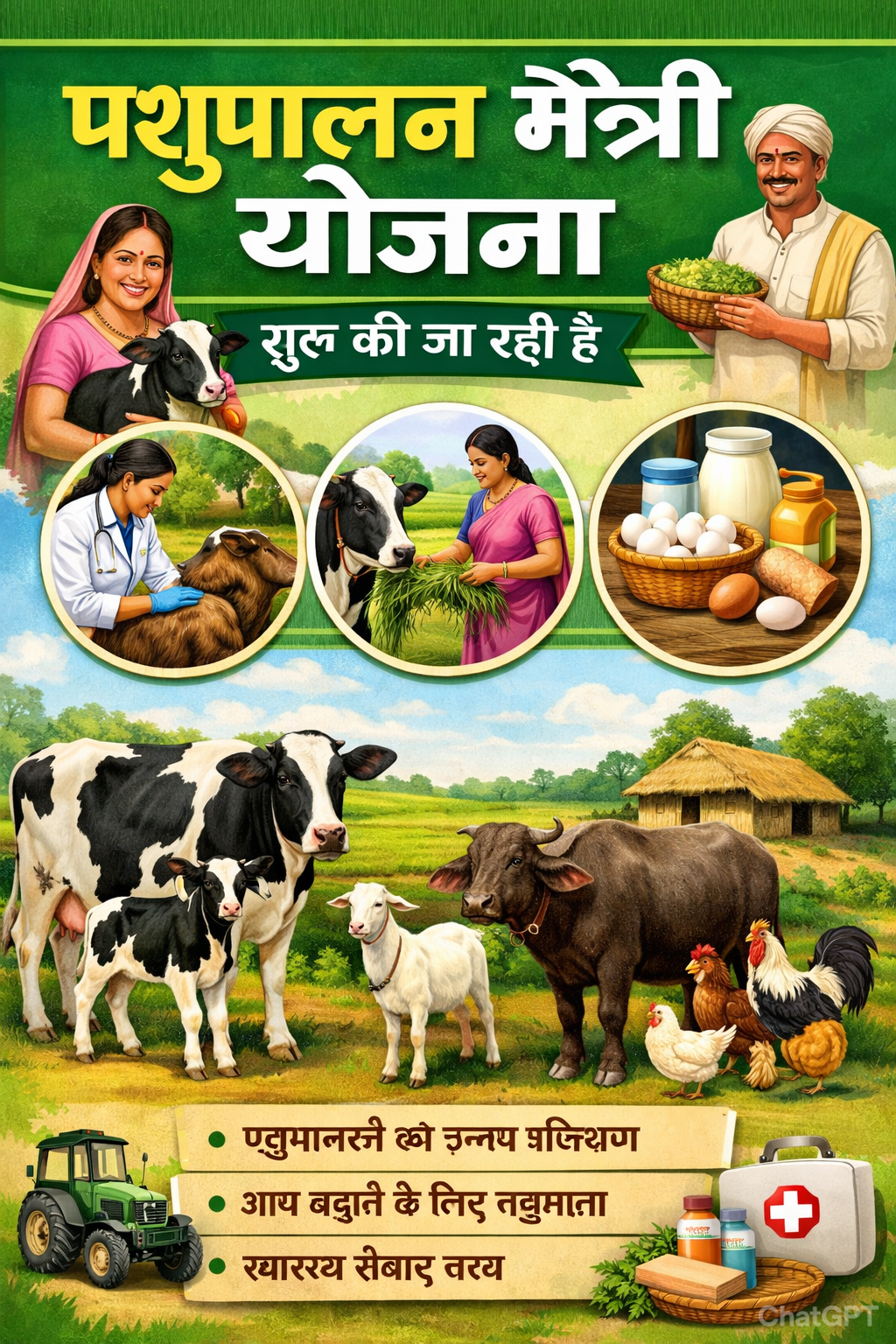 ग्रामीण युवाओं को रोजगार: इस योजना के तहत चयनित युवाओं को कृत्रिम गर्भधारण और पशुओं के सामान्य रोगों के प्राथमिक उपचार का प्रशिक्षण दिया जाएगा।
