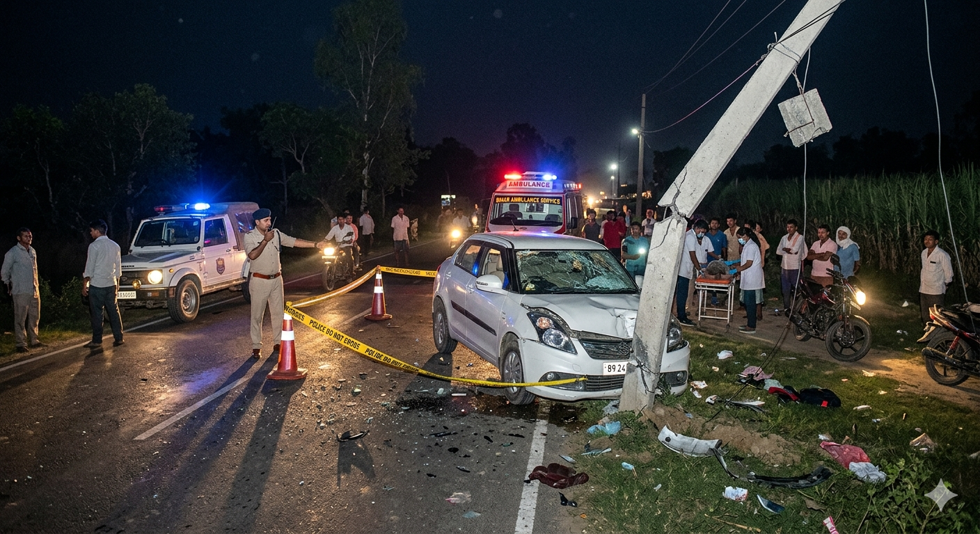 मिली जानकारी के अनुसार, घटना गुरुवार देर रात की है। अकोढ़ीगोला निवासी शिक्षक अजय सिंह अपने परिवार के साथ कार से वापस लौट रहे थे। तभी पडुहार गांव के समीप उनकी कार अचानक अनियंत्रित हो गई और सड़क किनारे लगे बिजली के ऊंचे खंभे से जा टकराई। टक्कर इतनी ज़बरदस्त थी कि कार के परखच्चे उड़ गए और बिजली का खंभा भी क्षतिग्रस्त हो गया।
